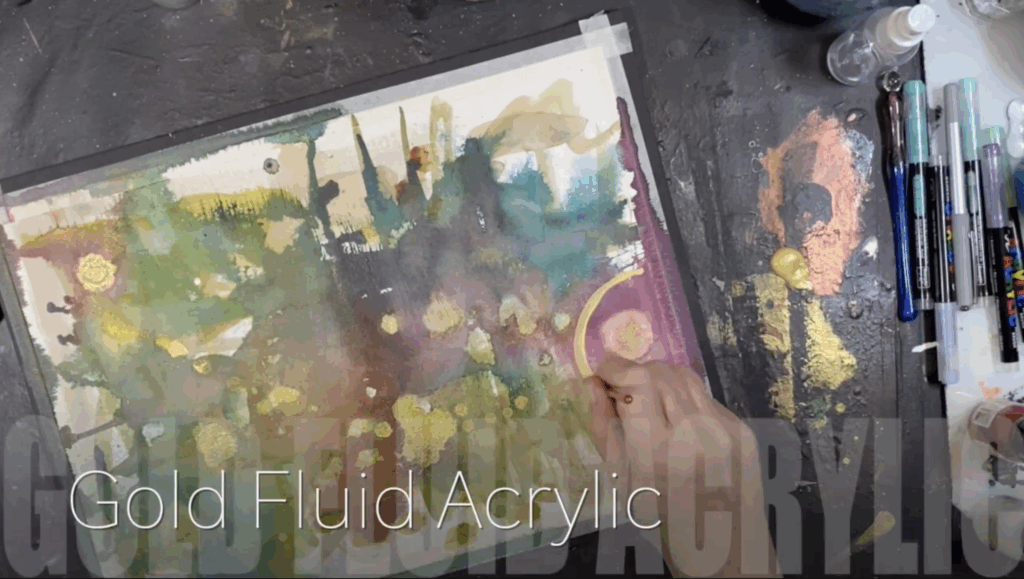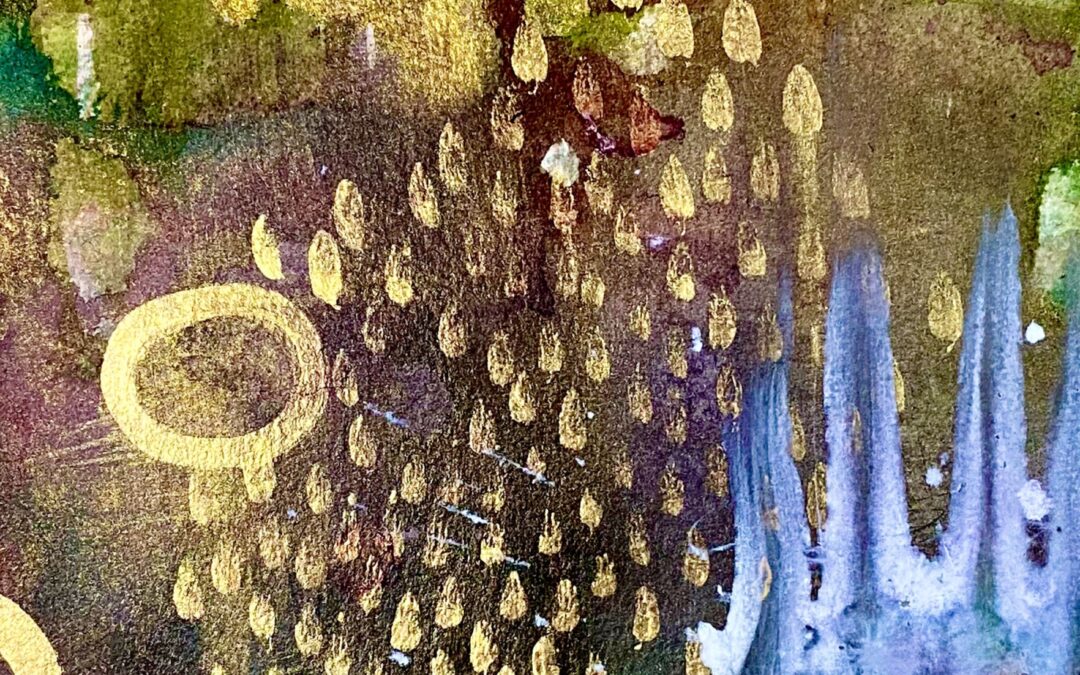 I couldn’t feel the “next impulse” I usually count on to get me started, so I defaulted to gold paint. If you know me at all, when I reach for gold, what I’m really reaching for is some sense of the divine. It shows up *a lot* in my paintings because I am, at heart, a devotional painter. Witchy, yes, but also attuned to the great all there is.