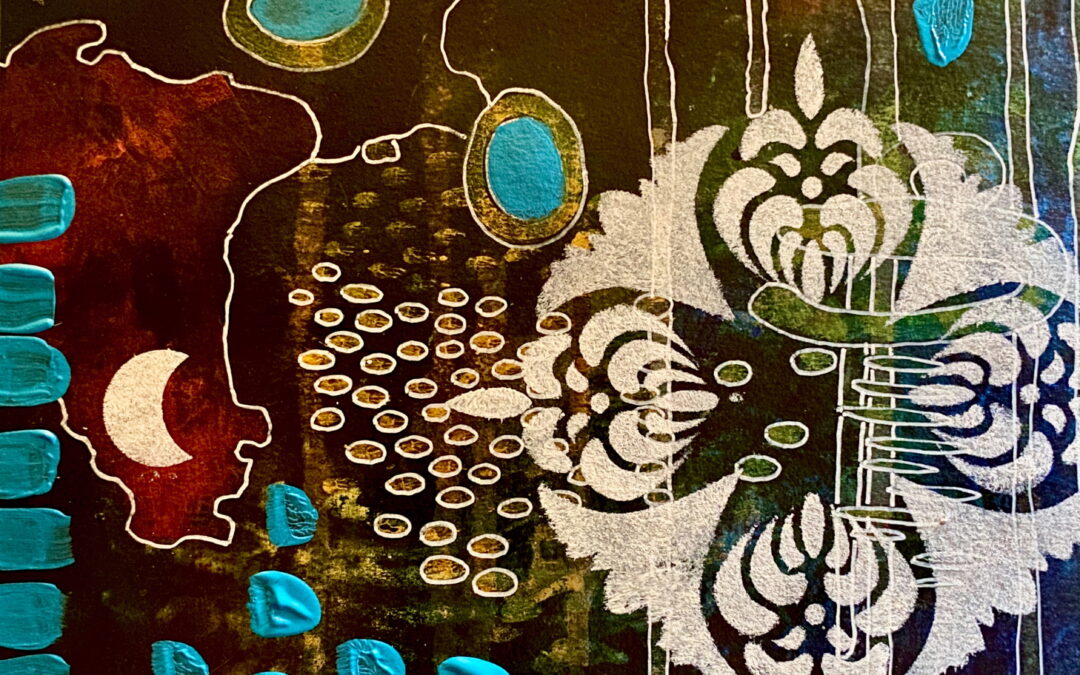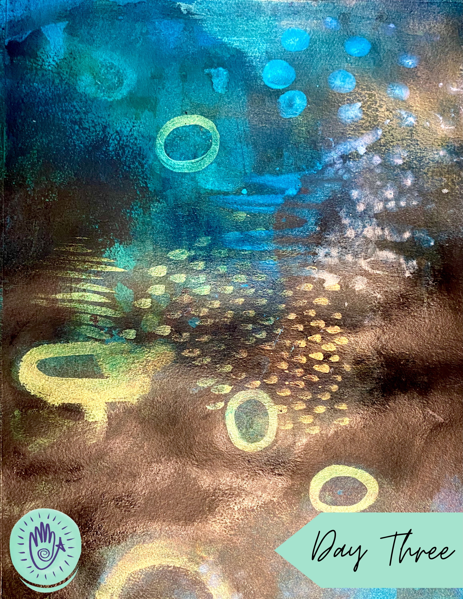 Then I pulled out a jar of Turquoise soft body acrylic and made some marks with that.